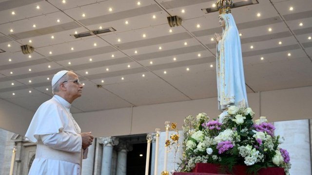 Papa faz apelo à paz junto à imagem da Virgem de Fátima na Praça de São Pedro